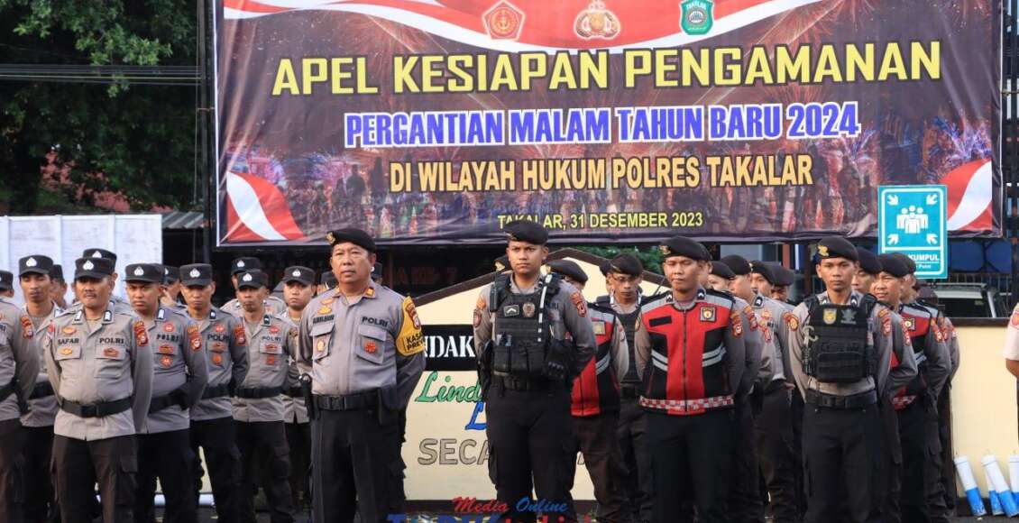 TAKALAR,ikagawanews.id – Dalam rangka kesiapan pengamanan perayaan tahun baru 2024, Kapolres Takalar AKBP Gotam Hidayat, S.I.K., M.Si pimpin Apel Gelar Pasukan Kesiapan Pengamanan Pergantian Malam Tahun Baru 2024 di halaman apel Polres Takalar, Sabtu (31/12/2023) sore.