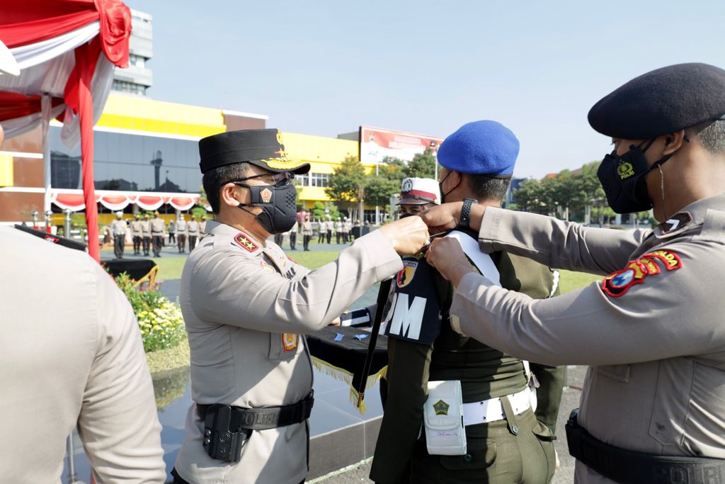“Sedangkan personil yang terlibat sebanyak 3. 343 orang, personil ini gabungan dari polda, polres dan stakeholder terkait. Sasarannya, masyarakat yang tidak patuhi prokes, masyarakat yang tidak disiplin berlalu lintas serta lokasi atau kegiatan masyarakat yang betpotensi menjadi Cluster Covid-19,” kata Kapolda Jatim, Irjen Pol Nico Afinta, usai memimpin apel gelar pasukan, Senin (20/9/2021) pagi.