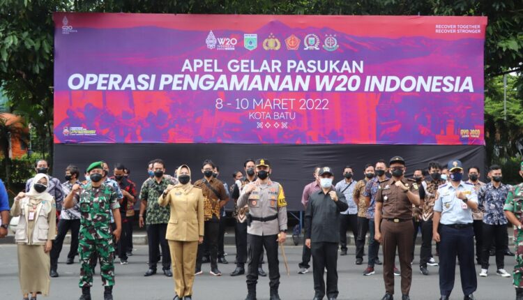 BATU,ikagawanews.id – Kapolres Batu AKBP I Nyoman Yogi Hermawan memimpin apel gelar pasukan guna kesiapan menyambut kegiatan W20 yang diselenggarakan mulai tanggal 8 sampai dengan 10 Maret 2022 di Kota Batu. Senin, (7/3/2022)