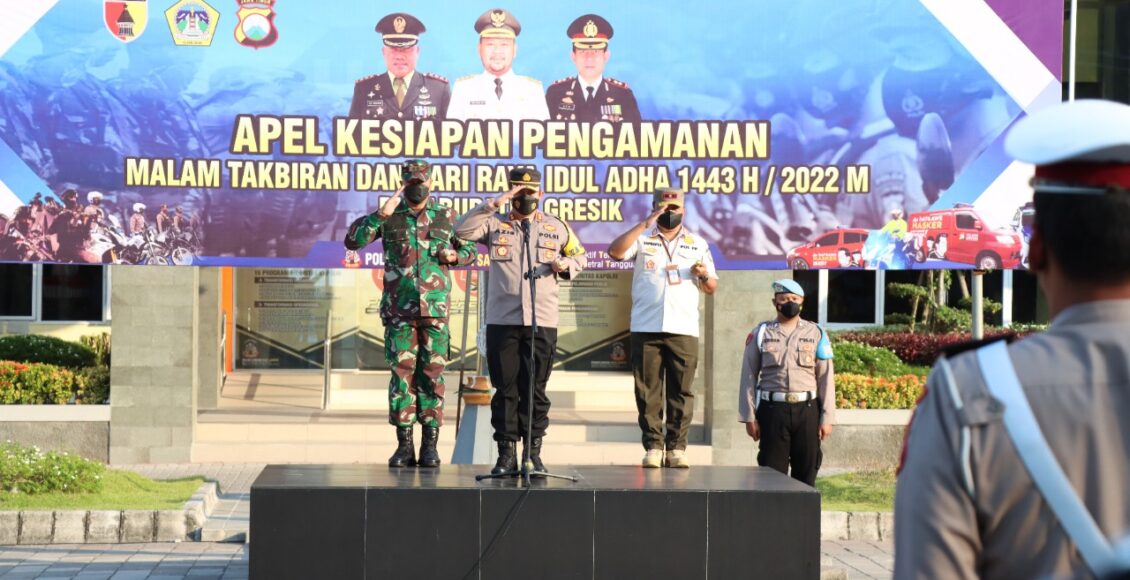 Apel Gelar Pasukan dalam rangka Kesiapan Pengamanan Hari Raya Idul Adha 1443 H dilanjutkan pengecekan hewan qurban di beberapa masjid termasuk masjid Agung, Masjid Jami’ dan Pos Sekat perbatasan Driyorejo Gresik.(Red/Hum)