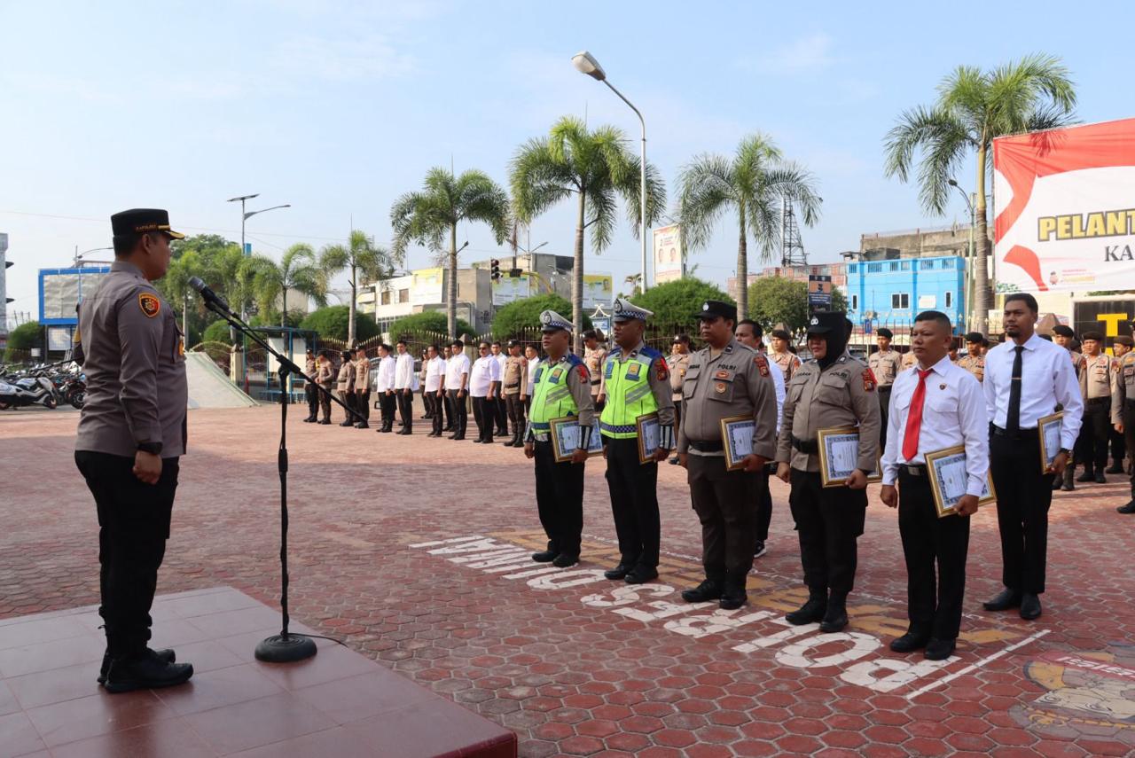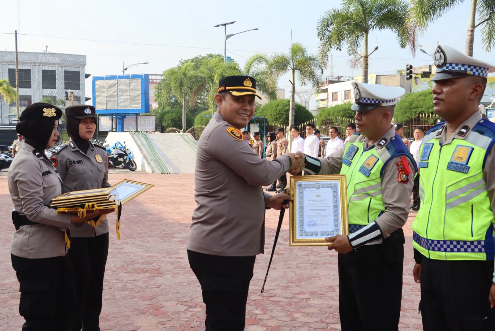 Usai pelaksanaan apel pagi jam pimpinan, Kapolres Dumai menyerahkan penghargaan kepada personel yang berprestasi dilingkungan Polres Dumai dalam rangka pembangunan zona integritas menuju predikat WBK dan WBBM Tahun 2024.(Red/Hum)
