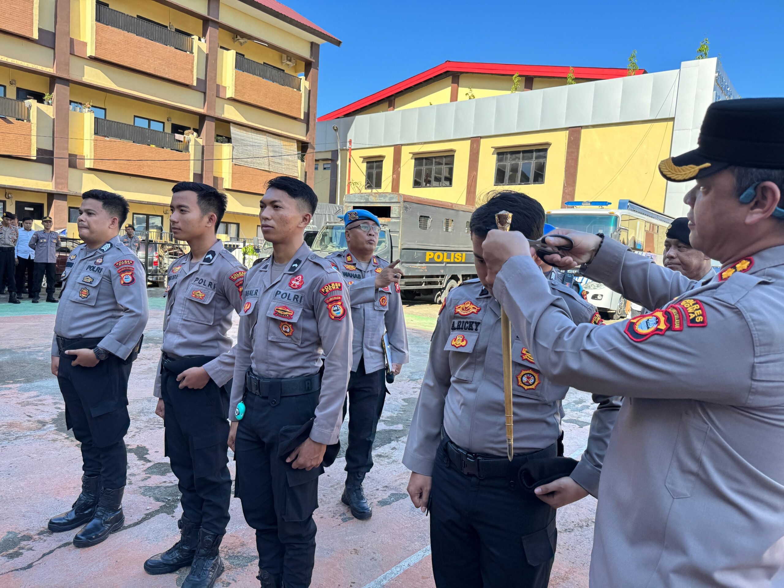 Dalam sidak tersebut, Kapolres menemukan beberapa personel dengan rambut yang dianggap terlalu panjang dan kurang rapi. Tanpa ragu, Kapolres langsung mengambil gunting dan memangkas rambut personel di tempat sebagai bentuk pembinaan disiplin.