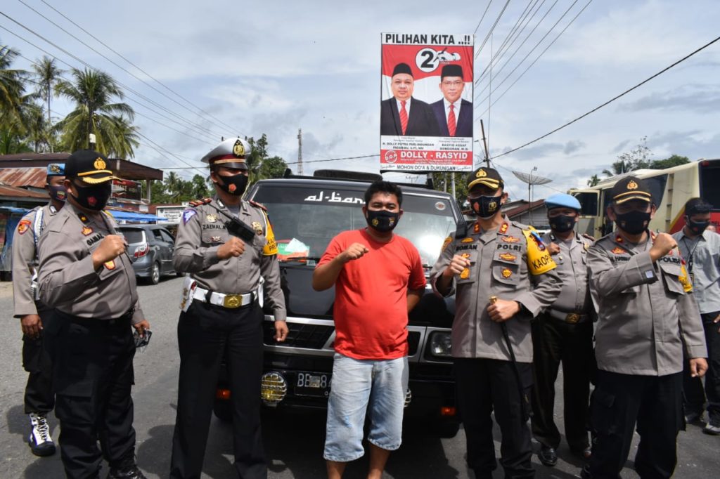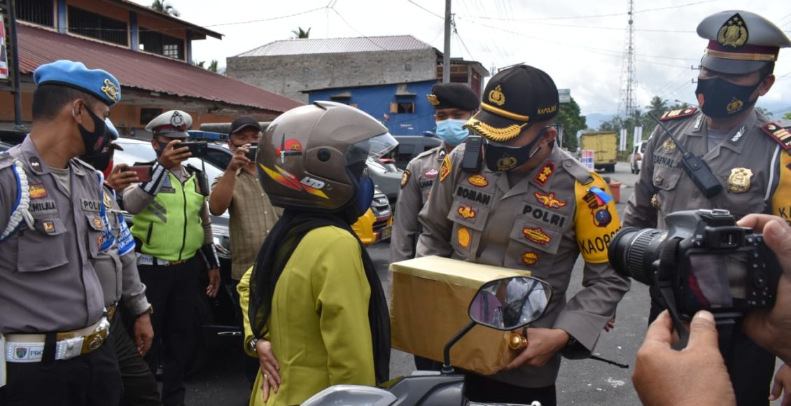 Di di lokasi Operasi, Kapolres Tapanuli Selatan menempelkan stiker himbauan dan memberikan reward / hadiah kepada pengendara bermotor yang memiliki kelengkapan surat-surat kendaraan bermotor dan memenuhi protokol kesehatan.