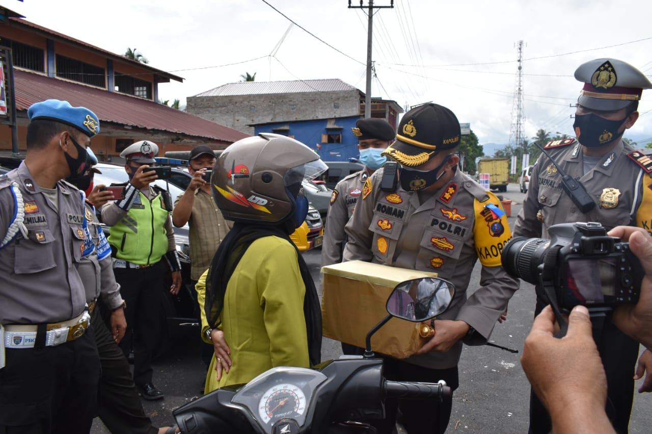 Selain itu, di lokasi Roman juga membagikan paket sembako dan masker. Hal ini merupakan salah satu bentuk kepedulian Kapolres Tapsel kepada masyarakat Tapanuli Selatan.