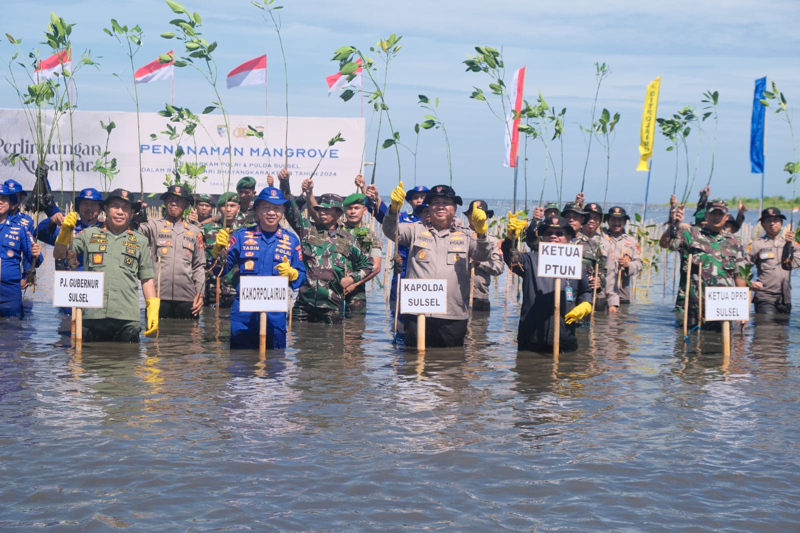 Acara ini diikuti oleh Kakor Sabhara Polri, Wakapolda Sulsel, PJU Baharkam Polri dan Polda Sulsel, Unsur TNI , Forkopoimda, Masyarakat dan personel Polri. Total bibit mangrove yang ditanam sebanyak 2.000 pohon.