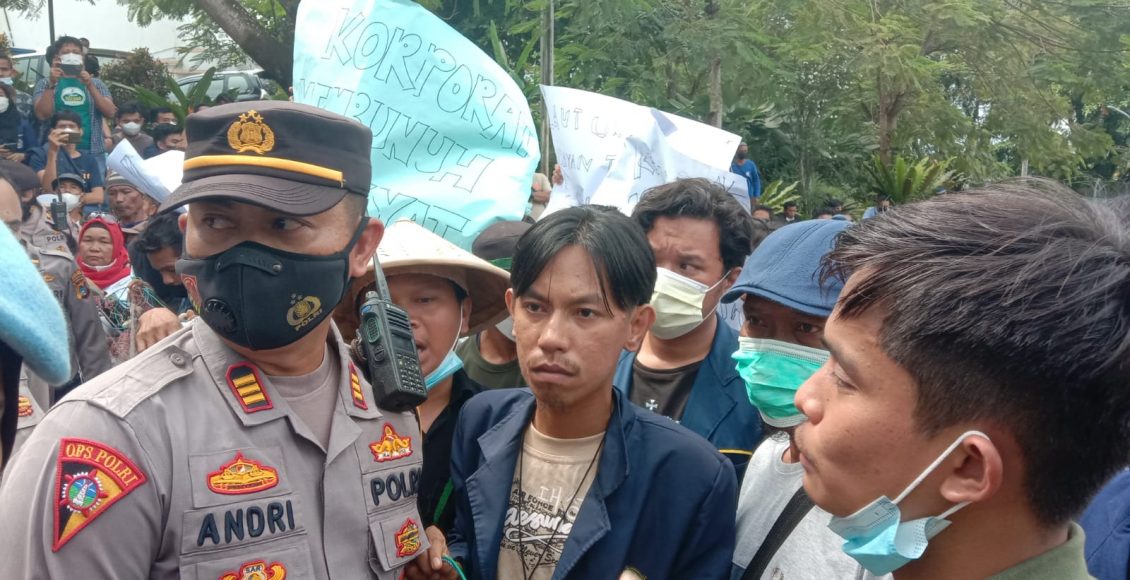 Pangkalpinang,ikagawanews.id  – Polres Pangkalpinang kembali menerjunkan Personelnya untuk melakukan pengawalan dan pengamanan aksi damai penyampaian pendapat dimuka umum oleh Forum Nelayan Pencinta Teluk kelabat dalam dan Perwakilan Mahasiswa yang dilakukan di depan Kantor Timah TBK Pangkalpinang. Senin (22/11).