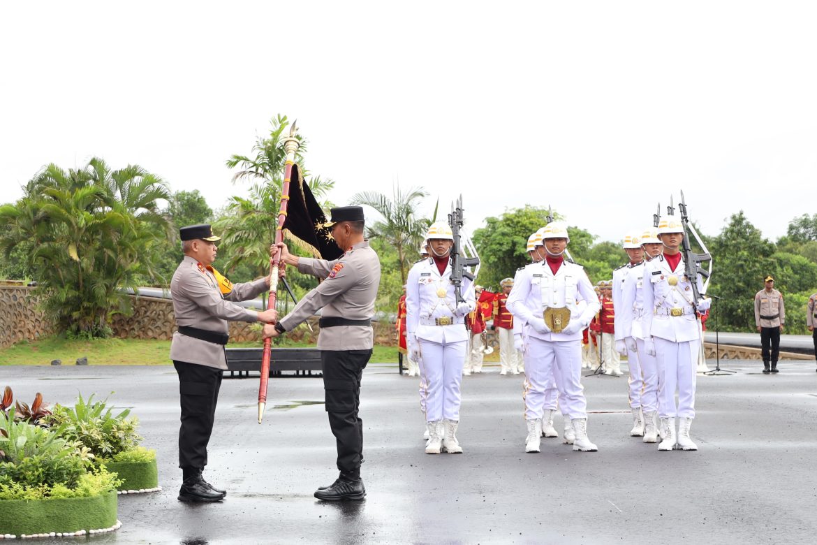 Kabid Humas Polda Kalsel Kombes Pol Adam Erwindi, S.I.K., M.H. mengatakan dalam upacara yang berlangsung khidmat tersebut, Irjen Pol Winarto menyerahkan simbol kebanggaan Polda Kalsel, Pataka “Tunggal Dharma Visuda,” kepada Irjen Pol Rosyanto Yudha Hermawan. Pataka tersebut melambangkan semangat, dedikasi, dan integritas yang diemban oleh Polda Kalsel dalam menjalankan tugasnya melayani masyarakat.