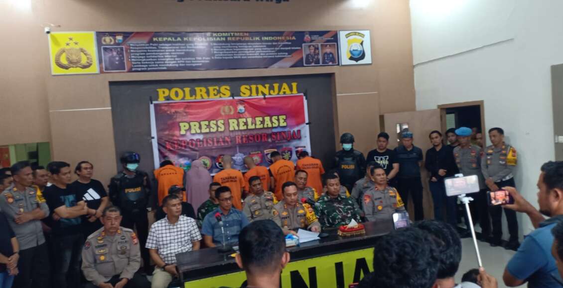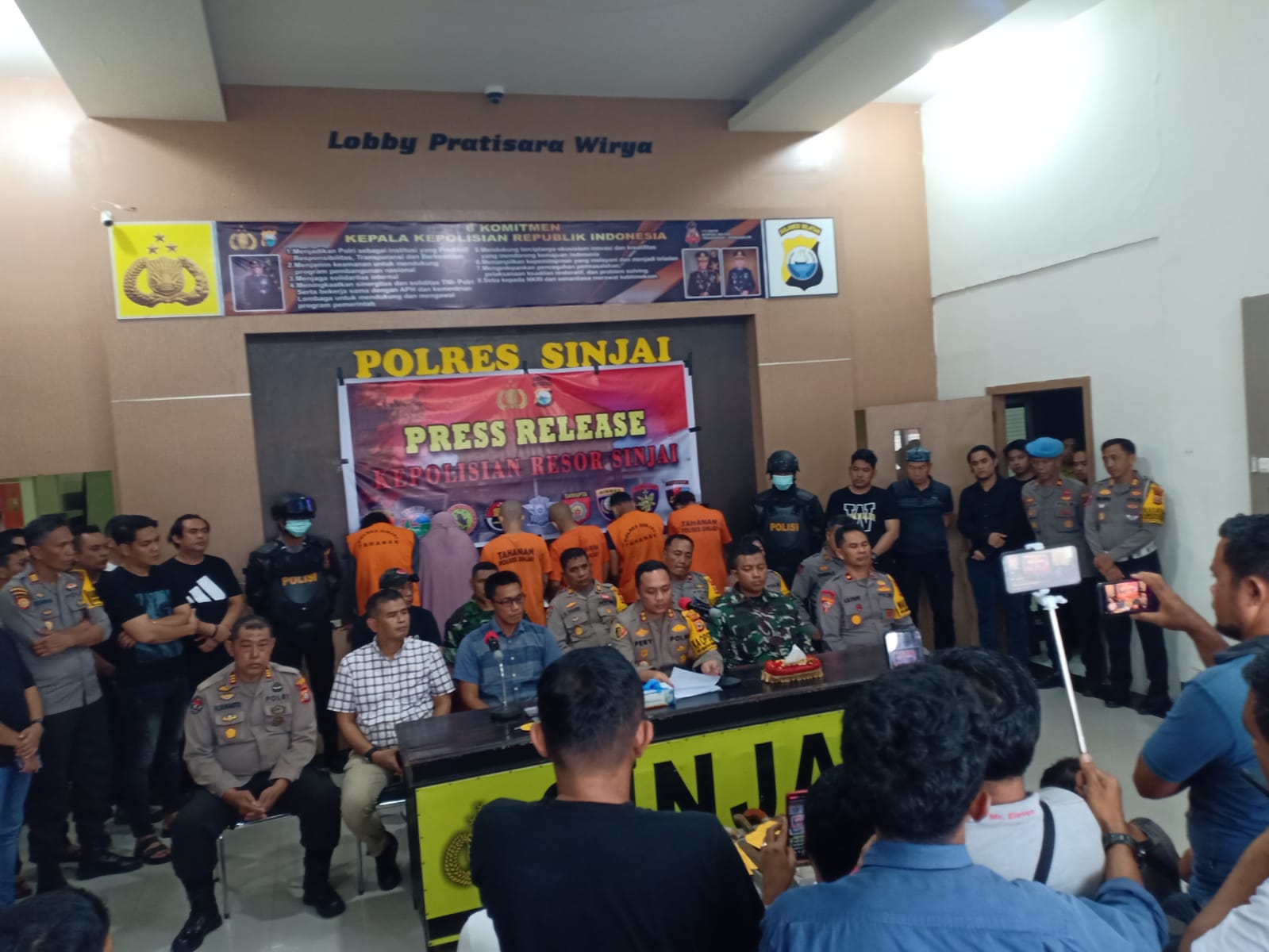 Dihadapan awak media, Kapolres Sinjai beberkan terkait penetapan tujuh tersangka, buntut dari aksi demonstrasi yang dilakukan massa dari Aliansi Masyarakat Simpatisan Kassibuleng, kecamatan Sinjai Borong.