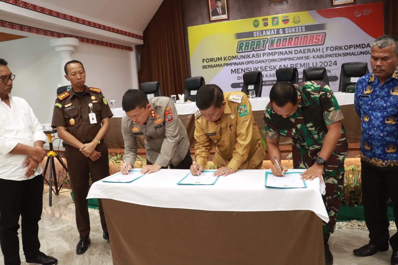 Simalungun,ikagawanews.id – Rapat koordinasi Forum Koordinasi Pimpinan Daerah (Forkopimda) bersama Pimpinan Organisasi Perangkat Daerah (OPD) dan Forkopimcam se-Kabupaten Simalungun digelar. Rapat ini bertujuan untuk mensukseskan Pemilihan Umum (PEMILU) 2024 di wilayah Kabupaten Simalungun, Selasa, 17 Oktober 2023.