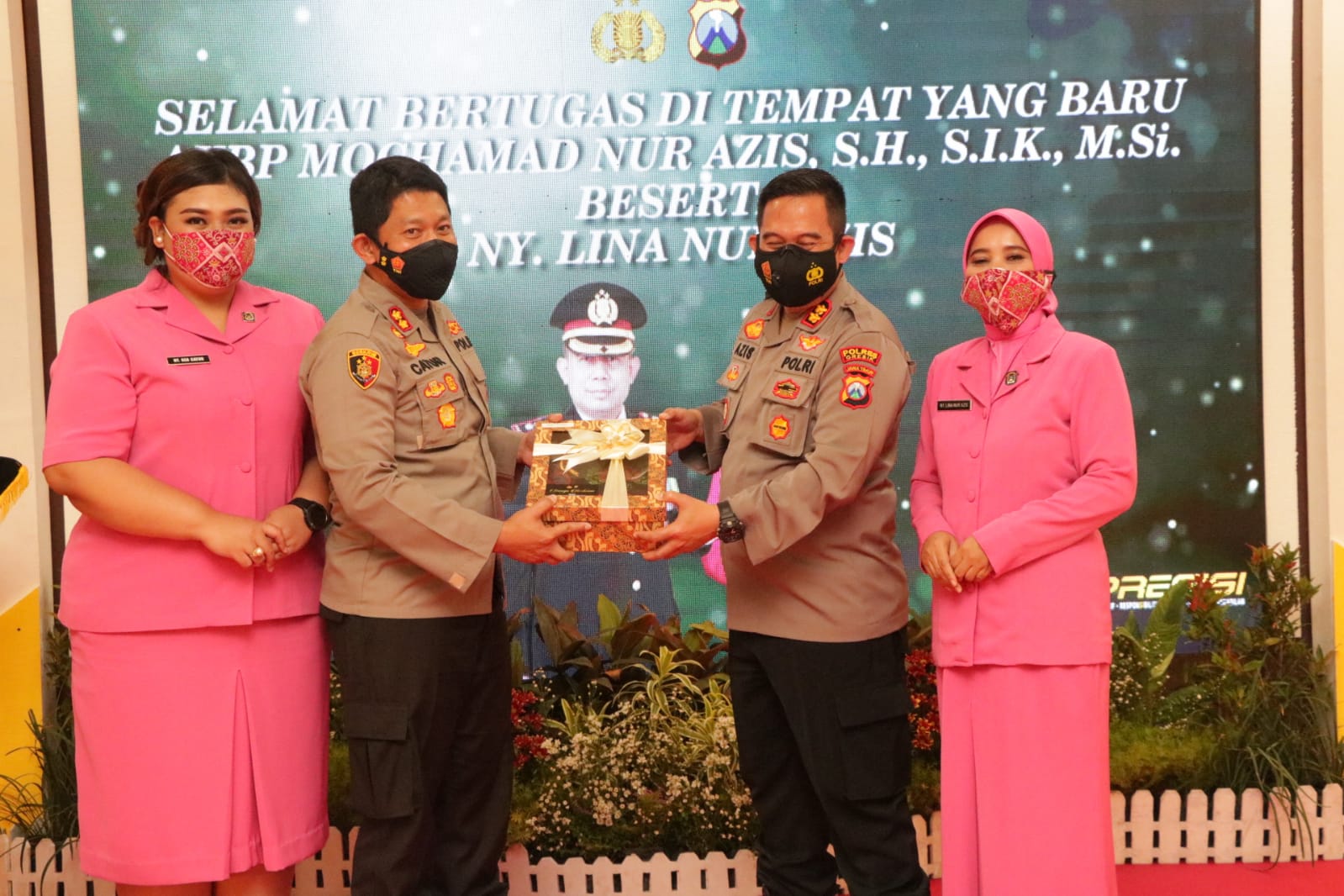 Kemudian acara dilanjutkan Pemberian Cindera mata dari Kapolres Ponorogo AKBP Catur Cahyono Wibowo, Wakapolres Ponorogo dan PJU Polres Ponorogo kepada AKBP Mochamad Nur Azis.