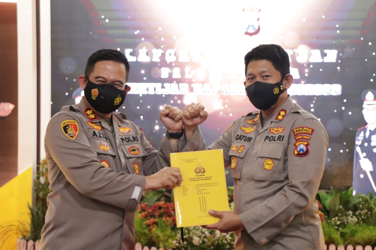 Berdasar Mutasi jabatan ini telegram nomor ST/1701/VIII/KEP./2021 tertanggal 25 Agustuas 2021, AKBP Catur Cahyono Wibowo yang sebelumnya menjabat Kapolres Batu Malang, kini resmi menjabat sebagai Kapolres Ponorogo yang baru menggantikan AKBP Mochamad Nur Azis yang menjabat sebagai Kapolres Gresik.
