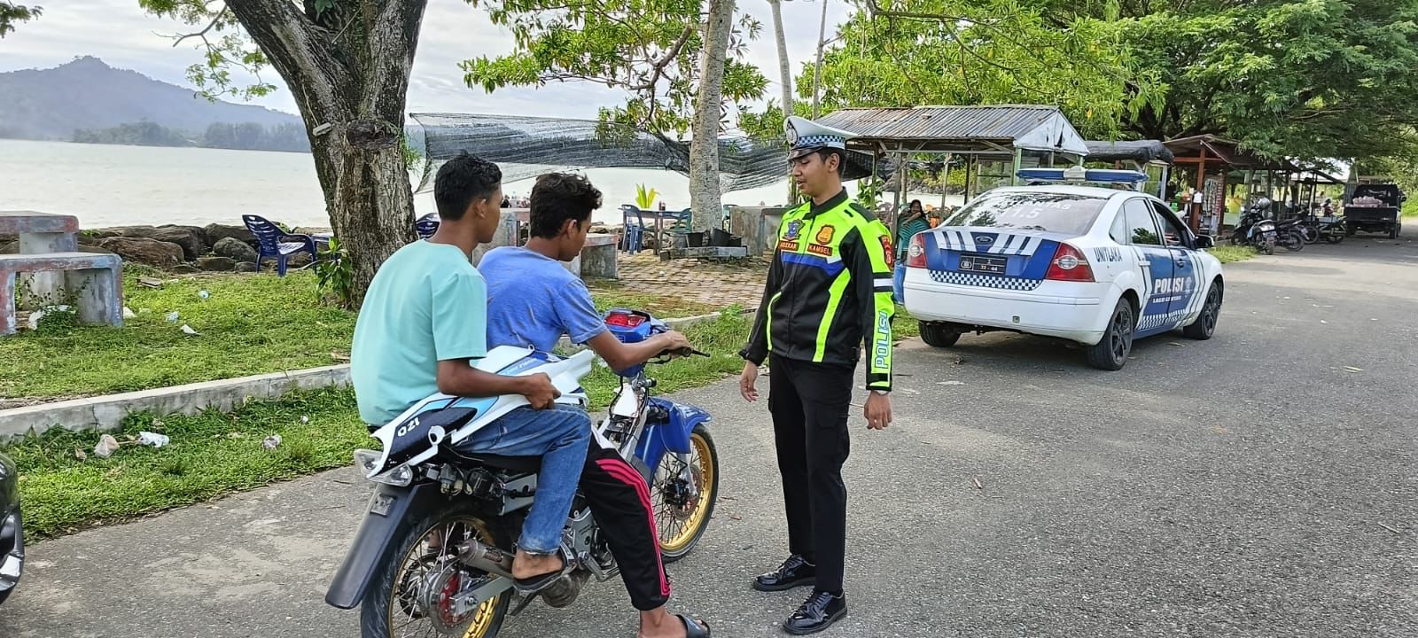 Polantas Polres Aceh Jaya Hadir: Patroli Tempat Wisata Antisipasi Kemacetan dan Laka Lantas