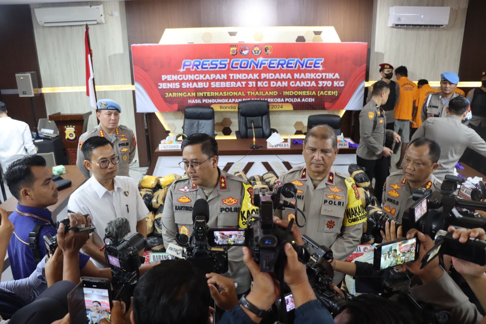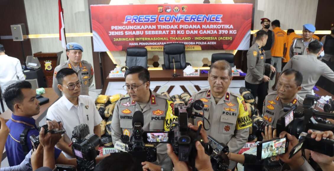 Hal tersebut diungkapkan Kapolda Aceh Irjen Achmad Kartiko dalam konferensi pers pengungkapan narkotika di Aula Machdum Sakti Polda Aceh, Rabu, 5 Juni 2024.