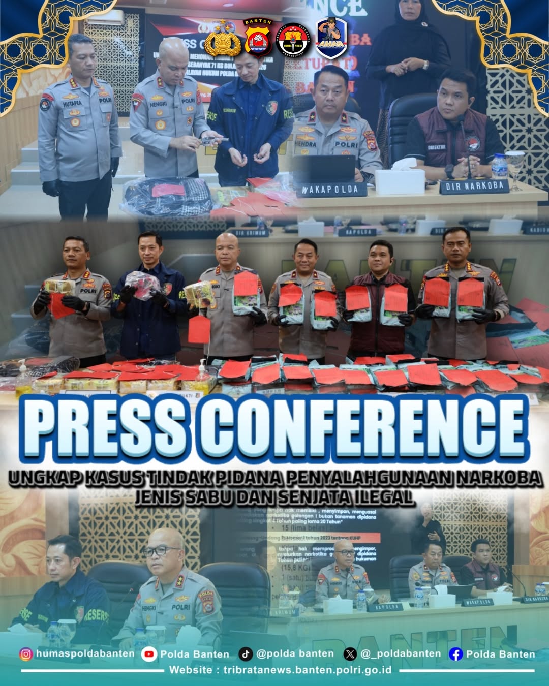 Polda Banten Gelar Press Conference Ungkap Kasus Tindak Pidana Penyalahgunaan Narkoba Jenis Sabu dan Senjata Ilegal