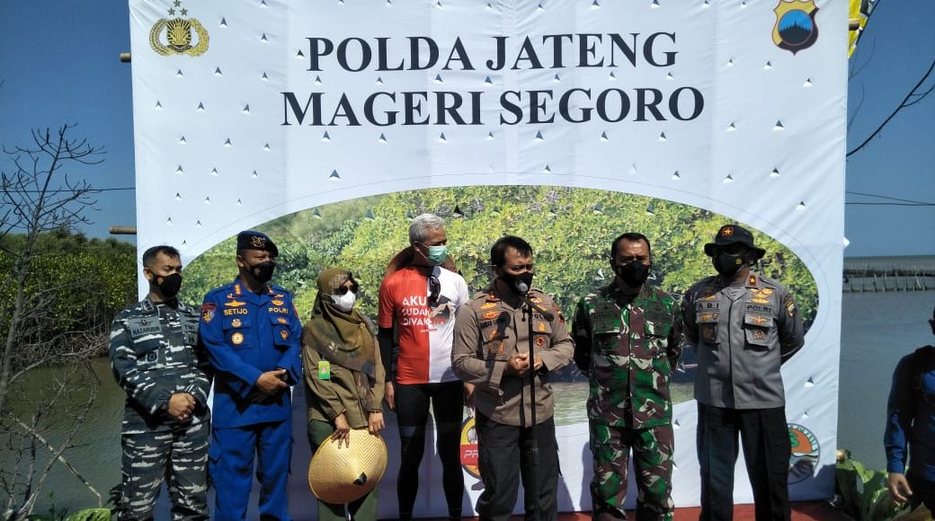 Menanam mangrove sebagai sumber kehidupan, “Terima kasih dan selamat, Mageri Segoro sebagai upaya kita untuk menyelamatkan bumi dan manusia”,ucap Gubernur Jateng.