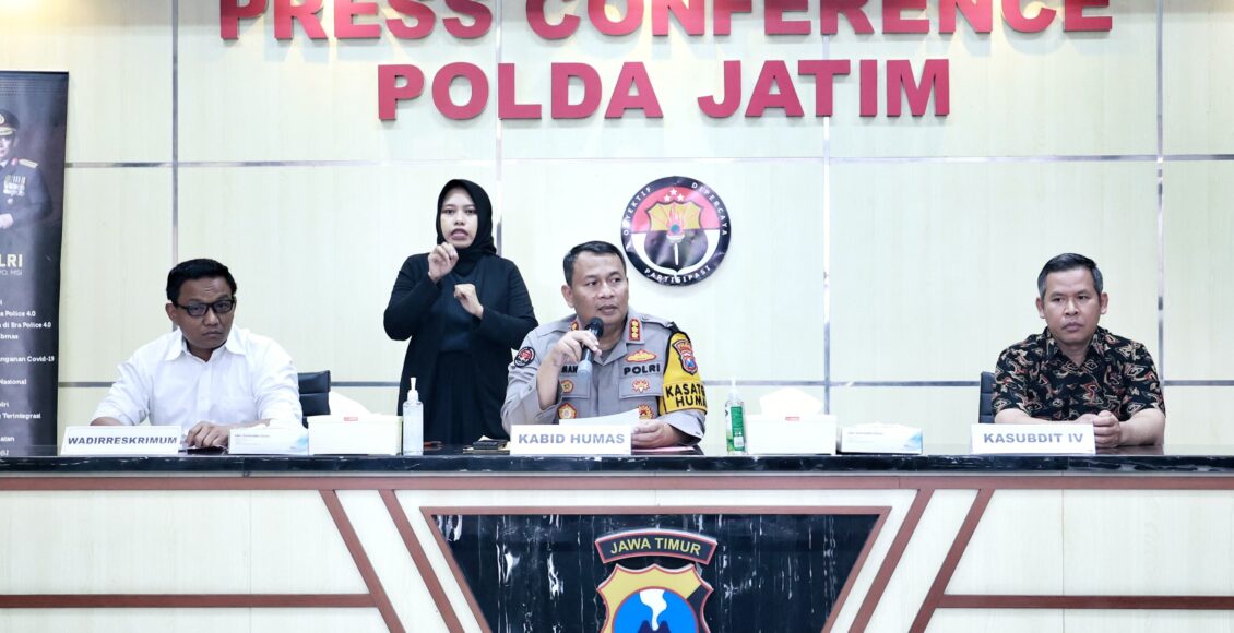 Hal itu seperti disampaikan oleh Kepala Bidang Hubungan Masyarakat (Kabidhumas) Polda Jawa Timur, Kombes Pol Dirmanto saat menggelar konferensi Pers di Gedung Bidhumas Polda Jatim,Selasa (01/10).