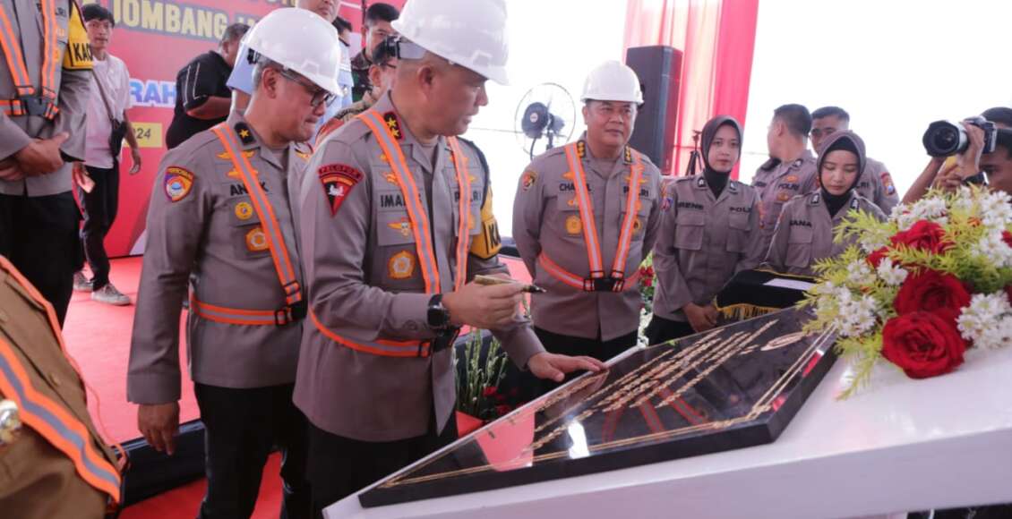 JOMBANG, ikagawanews.id – Kapolda Jawa Timur Irjen Pol Imam Sugianto bersama Karojemengar Srena Polri, Brigjen Pol. Andik Setiyono, serta Pejabat Utama Polda Jatim dan Forkopimda Kabupaten Jombang, melakukan ground breaking pembangunan rumah sakit Bhayangkara Jombang, di Jl. KH. Romli Tamim, Jombang. Selasa (28/5/2024).
