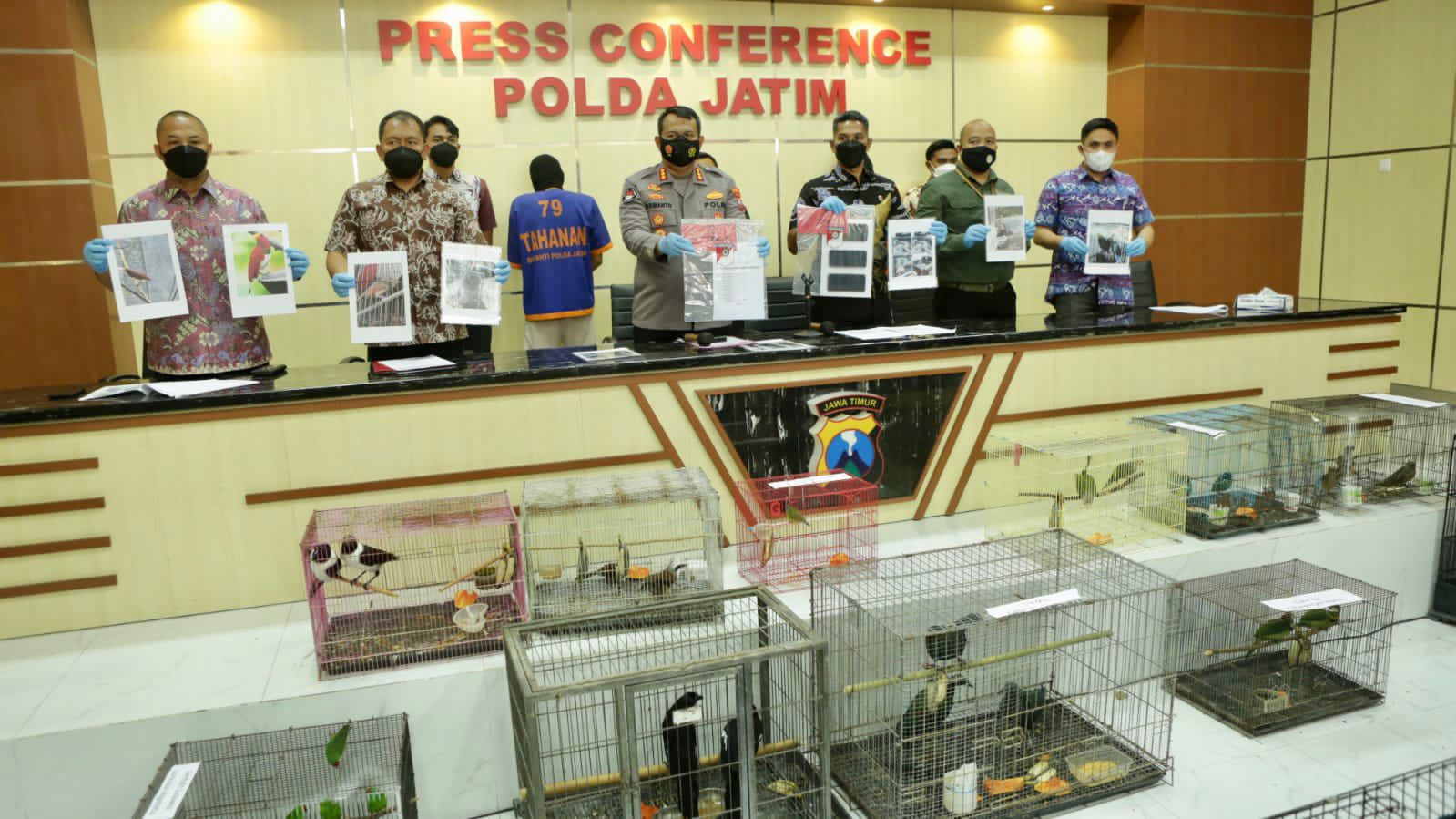 “Pengungkapan kasus yang dilaksanakan kita menangani 5 LP (perkara), kemudian dari pengungkapan kasus yang dilaksanakan kita juga mengamankan tersangka ada 5 orang, 2 status memperdagangkan satwa dilindungi dan 3 orang merupakan yang menguasai satwa dilindungi,” kata Kabid Humas Polda Jatim, Kombes Pol Dirmanto.