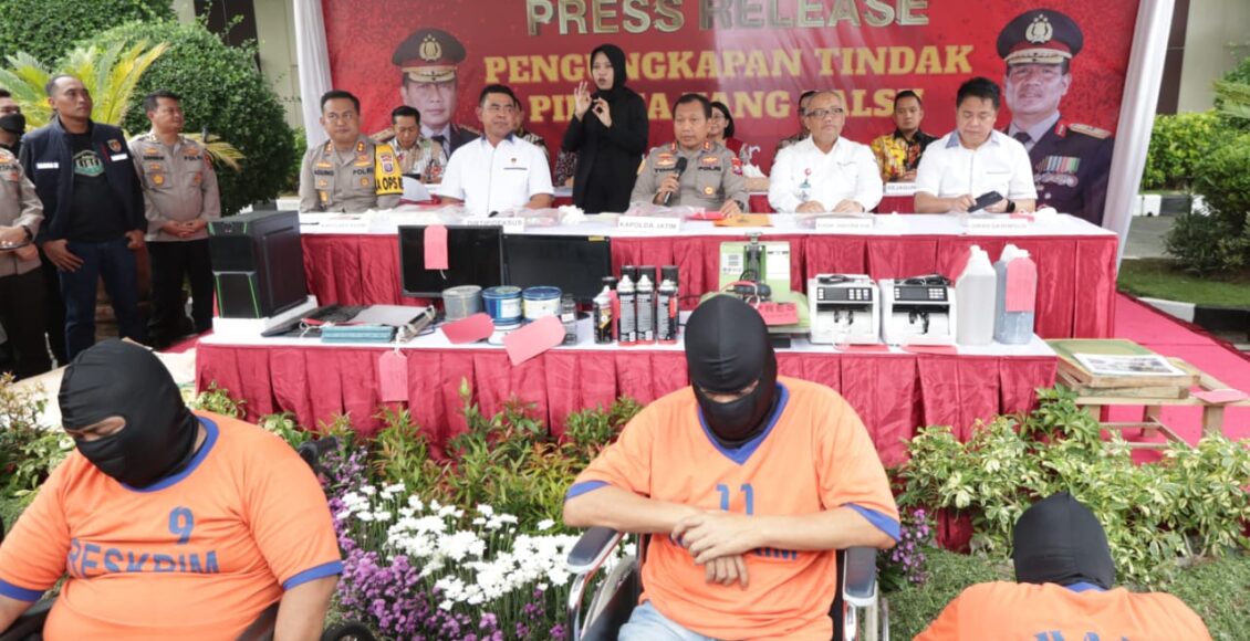 SURABAYA,ikagawanews.id – Polda Jatim bongkar sindikat produsen dan pengedar Uang Palsu (Upal) dari berbagai daerah di Indonesia.