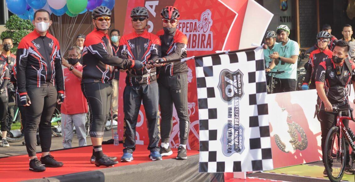 SURABAYA,ikagawanews.id – Peringati HUT Bhayangkara ke 76 tahun 2022, Polri menggelar acara Sepeda Gembira yang diikuti oleh seluruh jajaran Polda di Indonesia. Di Polda Jawa Timur kegiatan Sepeda Gembira dilepas oleh Wakapolda Jatim Brigjen Pol Slamet Hadi Supraptoyo, pada Minggu pagi (19/6/2022) di Mapolda Jatim.
