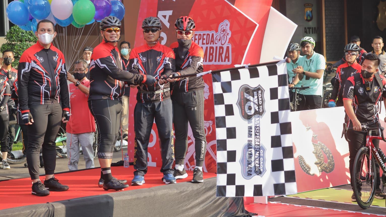 Dalam kegiatan Sepeda Gembira yang berlangsung di Polda Jawa Timur ini dihadiri oleh pejabat baik dari TNI, Forkopimda dan stakeholder diantaranya Gubernur AAL Laksda TNI Denih Hendrata , Wadankodiklatal Laksda Agus Hariyadi, Irdam V/Brawijaya Brigjen TNI Tjatur Putra Gunadi, Danpasmar II/Surabaya, Danguspurla Koarmada II, Danlantamal V/Surabaya, Danlanud Moeljono, Kakanwil Dirjend Bea Cukai Jatim, Kepala OPD Prov Jatim dan pejabat utama Polda Jatim serta diikuti sebanyak 21.117 peserta yang datang dari berbagai kalangan, baik dari TNI-Polri, Pemprov Jatim, instansi pemerintah,komunitas sepeda, dan awak media.