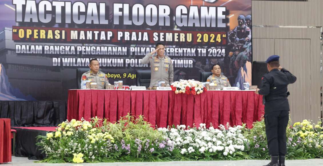 Pelaksanaan TFG dalam rangka pengamanan tahapan Pemilihan Kepala Daerah ( Pilkada ) 2024 di Jawa Timur digelar oleh Polda Jatim bersama 39 satuan wilayah Polres yang ada di jajarannya di Gedung Mahameru Polda Jatim, Jumat (9/8).