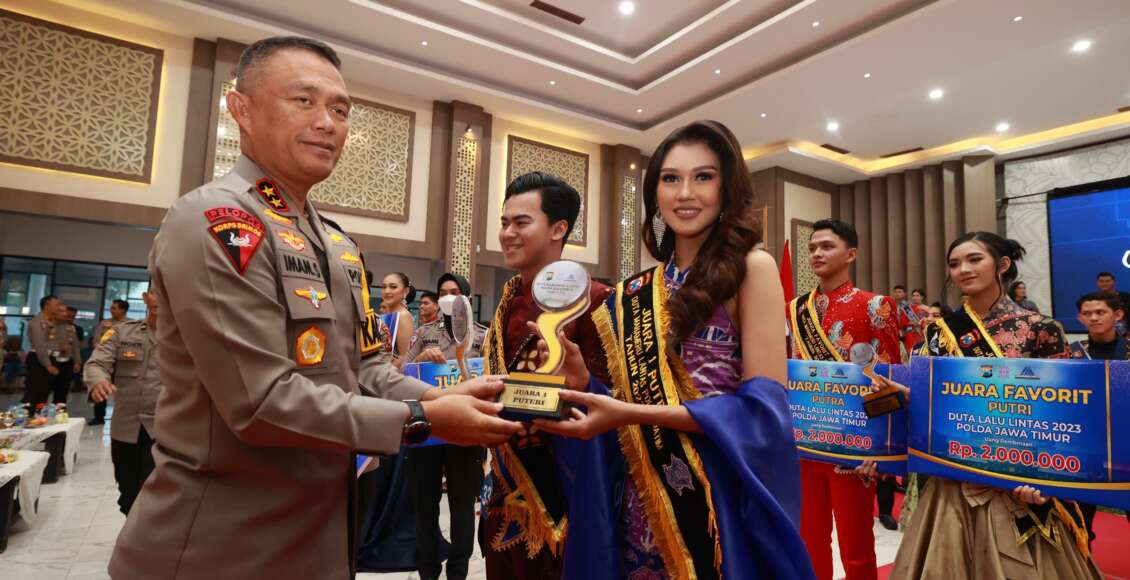 Final pemilihan Duta Lalu Lintas tahun 2023 ini berlangsung pada Rabu (29/11/2023), di gedung Mahameru Mapolda Jatim dan dihadiri oleh Kapolda Jatim Irjen Drs Imam Sugianto serta Pejabat Utama Polda Jatim dan Direktur Lalu Lintas (Dirlantas) Polda Jatim, Kombes Komarudin serta Kasat Lantas di Jajaran Polda Jatim.