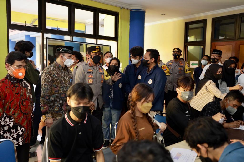 Kegiatan vaksinasi ini dicek langsung oleh Kapolda Jawa Timur Irjen Pol Nico Afinta, didampingi oleh Pejabat Utama Polda Jatim, Wakil Rektor Bidang Akademik, Kemahasiswaan dan Alumni, Prof.Dr. Bambang Sektiari Lukiswanto, Drh., DEA, Direktur Kemahasiswaan Unair Dr. M. Hadi Shubhan, S.H., M.H., CN serta Wakil dari BEM Unair Ramadhani Jaka Samudra
