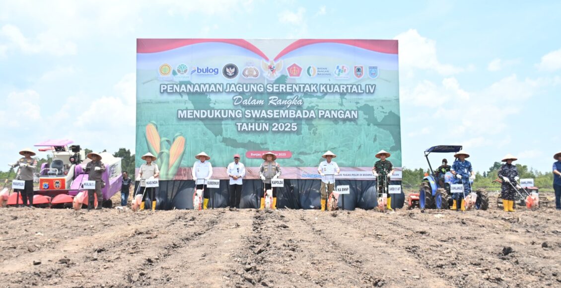 KALSEL,ikagawanews.id – Kepolisian Daerah Kalimantan Selatan (Polda Kalsel) kembali menggerakkan program ketahanan pangan dengan menanam jagung di lahan rawa seluas 16 hektar. Kegiatan tanam perdana kuartal IV ini dipusatkan di Lahan Ketahanan Pangan Polda Kalsel, Jalan Gubernur Syarkawi KM 17, Kabupaten Banjar, pada Rabu (8/10/2025).