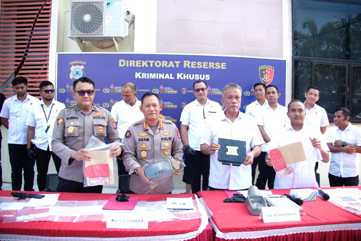 Dalam konferensi pers ini turut hadir Kabid Humas Polda Kalsel Kombes Pol Adam Erwindi, S.I.K., M.H., Kabag Binops Biro Ops Polda Kalsel AKBP Asep Sayidi Wijaya, S.I.K., Kabag Binopsnal Dit Reskrimsus Polda Kalsel AKBP Suprapto, S.H., M.H., dan Kasubdit IV Tipidter Dit Reskrimsus Polda Kalsel AKBP Ricky Boy Siallagan, S.I.K., M.I.K.