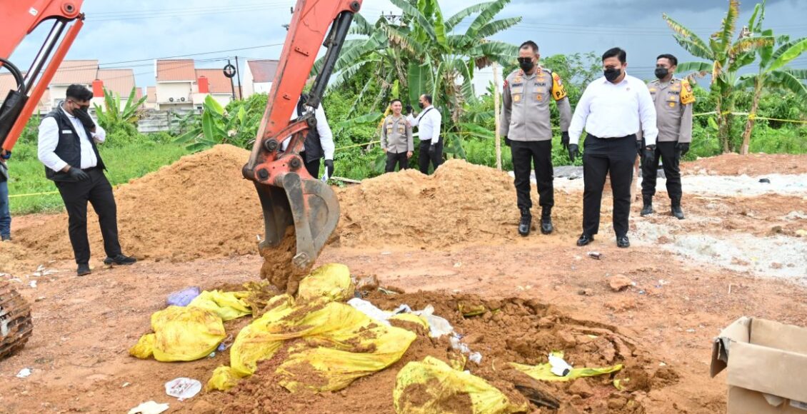 “Berdasarkan informasi yang kami terima, di sekitar lokasi ini ada penimbunan limbah medis,” kata Kapolda Kalsel Irjen Pol Winarto di lokasi penggrebekan.