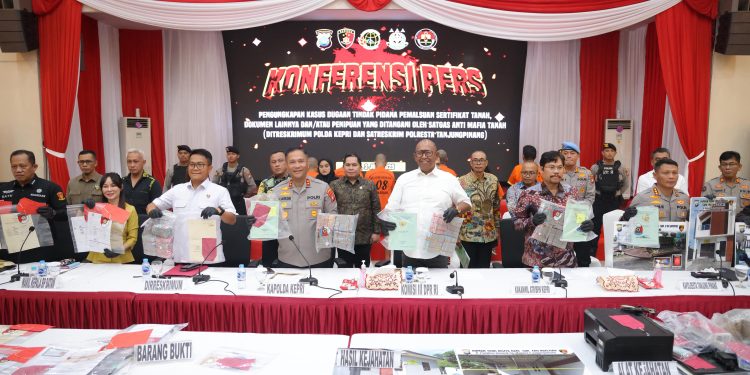 KEPRI,ikagawanews.id – Polda Kepri bersama Polresta Tanjungpinang menggelar Konferensi Pers Ungkap Kasus Mafia Tanah pada Kamis (3/7/2025) pukul 10.00 WIB bertempat di Gedung Lancang Kuning Polda Kepri. Kegiatan ini merupakan wujud komitmen Polda Kepri dalam memberantas tindak pidana pertanahan yang merugikan masyarakat luas.