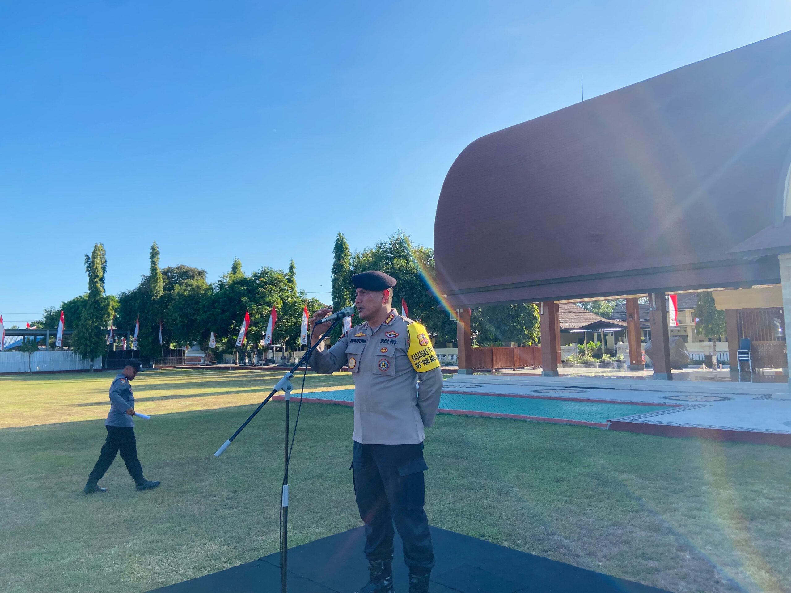 Dalam arahannya, Kombes Pol Suprayitno menekankan agar setiap personel diwajibkan untuk melaksanakan pengamanan dan pengecekan yang ketat terhadap orang dan barang di pelabuhan penyebrangan serta bandara.