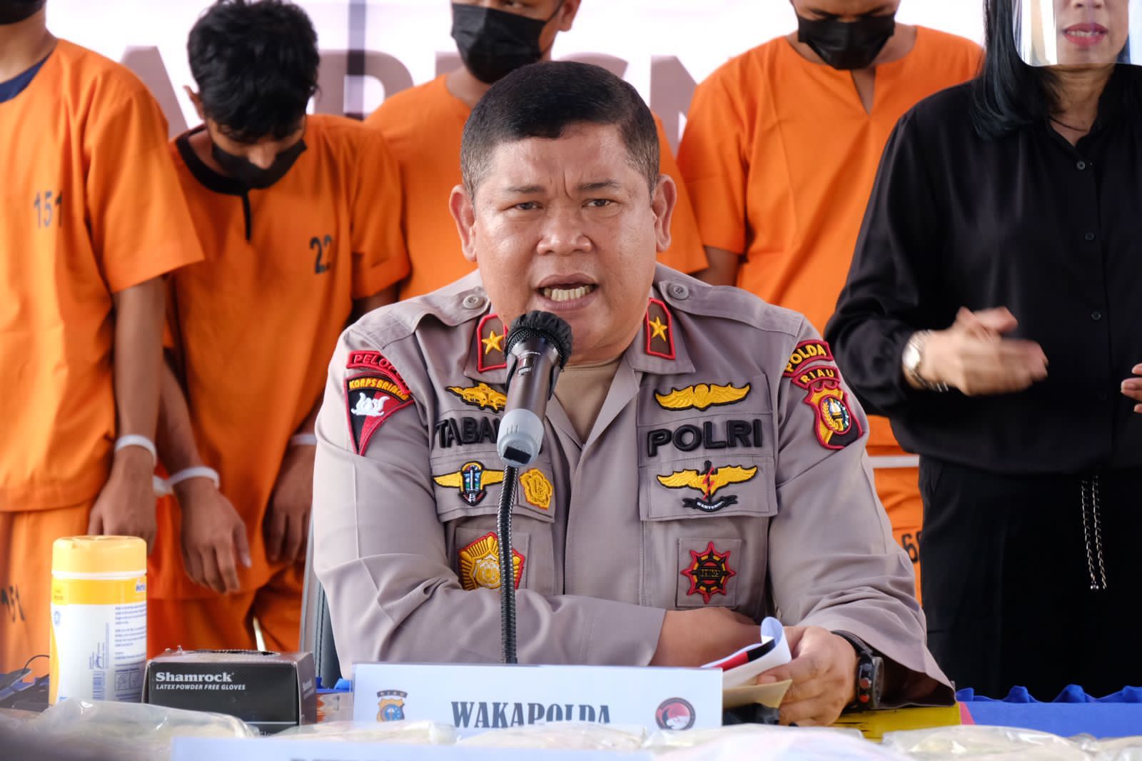 Wakapolda Riau menjelaskan rincian kasusnya, diantaranya pertama ditangani Subdit III Ditresnarkoba (Sesuai LP/A/432/IX/2022/Spkt.Ditresnarkoba/Polda Riau tgl 11 September 2022). Jumlah Barang Bukti 99,45 kg sabu dan