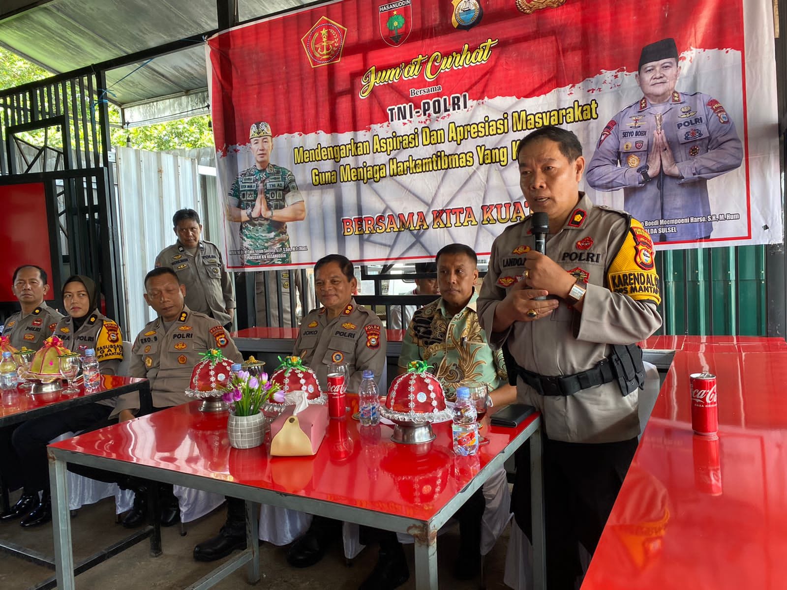Dirbinmas Polda Sulsel menyampaikan Jumat Curhat bersama warga Jl. Sabutung Makassar dan Karyawan Pelindo Regional 4 Cabang Makassar Unit Paotere bertujuan mendengar aspirasi dan keluhan masyarakat dalam upaya menjaga Kamtibmas yang kondusif.