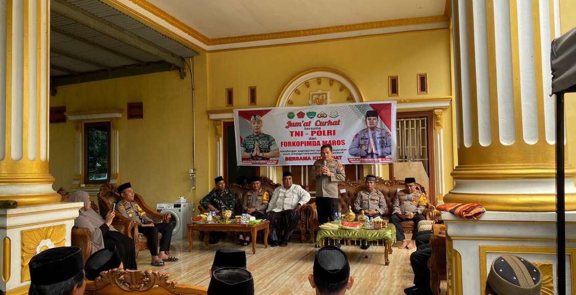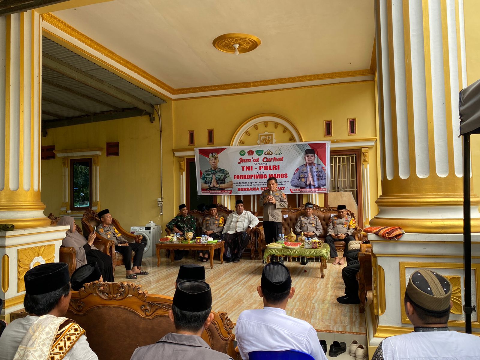 Perwakilan PJU Polda Sulsel menyampaikan Jumat Curhat bersama komunitas masyarakat Kec. Simbang Kab. Maros bertujuan Mendengar aspirasi dan keluhan masyarakat dalam upaya menjaga Kamtibmas yang kondusif jelang Pemilu 2024.