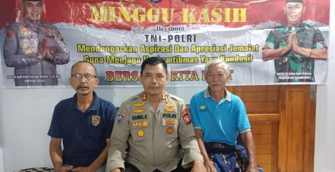 Pada kesempatan kali ini Kasubdit Binpolmas Ditbinmas Polda Sulsel AKBP Daniel Siampa, SH, MH mewakili Kapolda Sulsel Terima Aspirasi Warga dalam Minggu Kasih di di Dusun Kendenan Kec. Makale Kab. Tana Toraja, Kamis, (14/03/2024)
