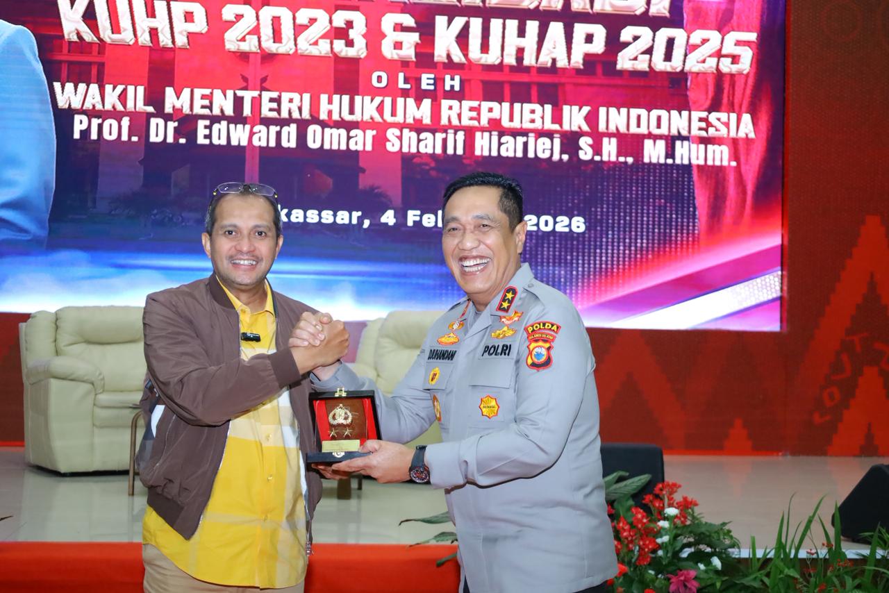 SULSEL,ikagawanews.id – Polda Sulawesi Selatan menggelar kegiatan sosialisasi Undang-Undang Nomor 1 Tahun 2023 tentang Kitab Undang-Undang Hukum Pidana (KUHP) dan Undang-Undang Nomor 20 Tahun 2025 tentang Kitab Undang-Undang Hukum Acara Pidana (KUHAP), bertempat di Aula Mappaoddang Mapolda Sulsel, Rabu (04/02/2026).