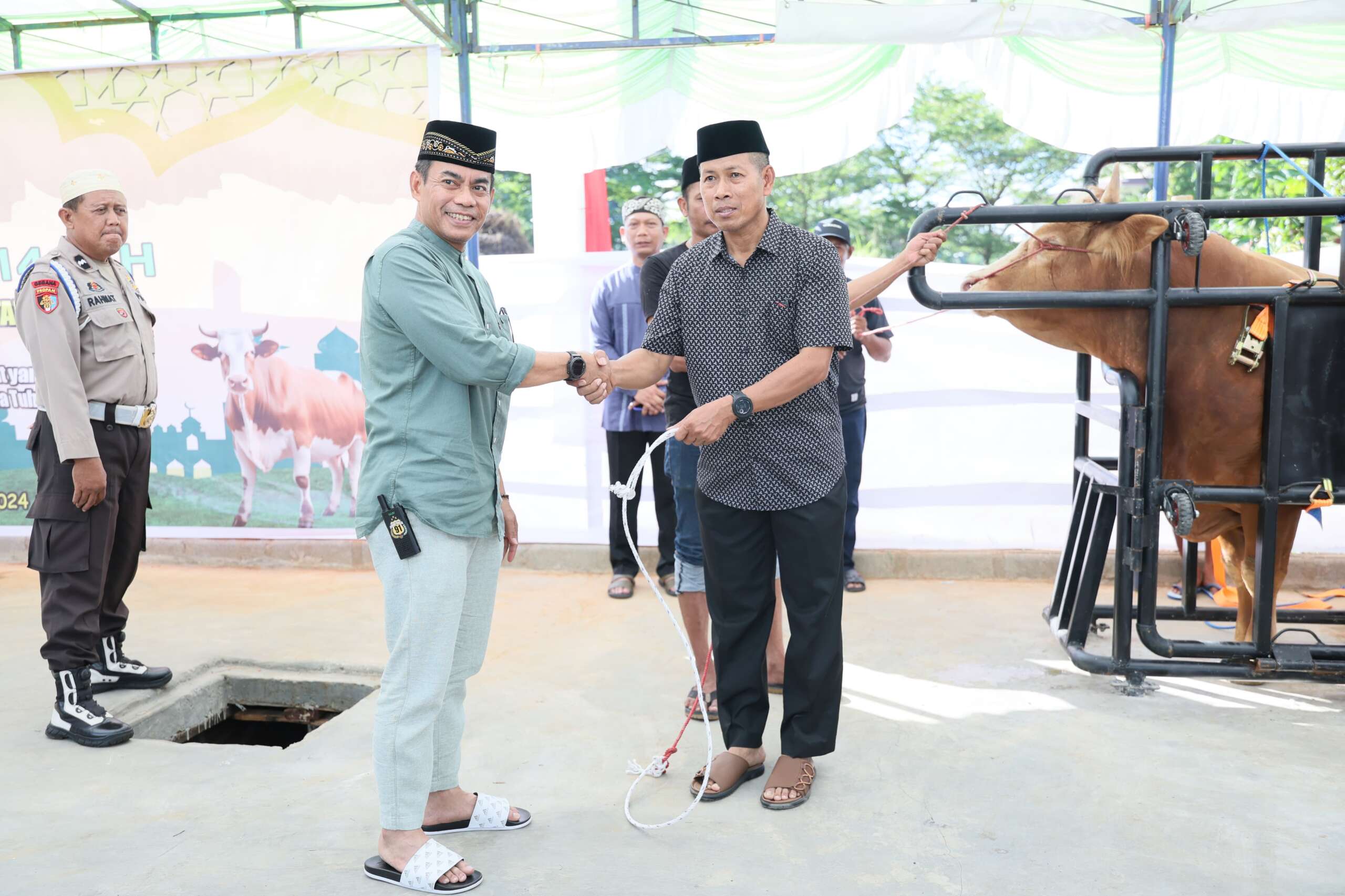 Penyerahan sapi qurban dilakukan Kapolda Sulsel, Irjen Pol Andi Rian R Djajadi, di Mapolda Sulsel, Jalan Perintis Kemerdekaan, Makassar, pada Hari Raya Iduladha 1445 Hijriah, Minggu, 16 Juni 2024.