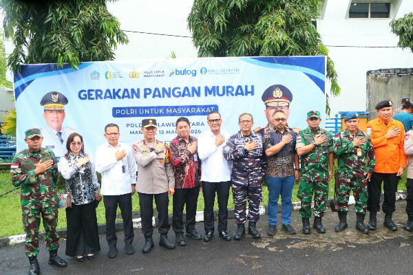 SULUT,ikagawanews.id – Menjelang peringatan Hari Raya Idul Fitri dan Hari Raya Nyepi tahun 2026, Kepolisian Daerah (Polda) Sulawesi Utara bekerja sama dengan Perum Bulog Wilayah Sulut-Go menyelenggarakan kegiatan Gerakan Pangan Murah, di halaman Kantor Perum Bulog Sulawesi Utara pada Jumat, 13 Maret 2026.