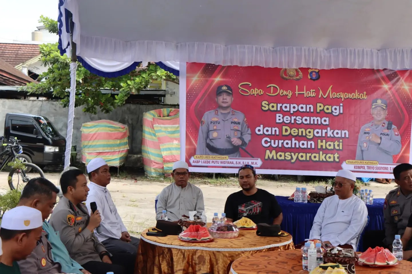 Hadir dalam kegiatan Kapolres Katingan I Gede Putu Widyana., S.H., S.I.K., M.H., dan di damping Para PJU, kegiatan di laksanakan di depan Pospol Lama, Jalan pembangunan, Pasar besar kereng pangi, Jumat,Kapolres mengatakan, pada Jumat pagi mereka melaksanakan kegiatan duduk bersama masyarakat. Hal ini terkait dengan program Kapolri yaitu Jumat Curhat.