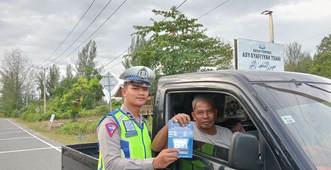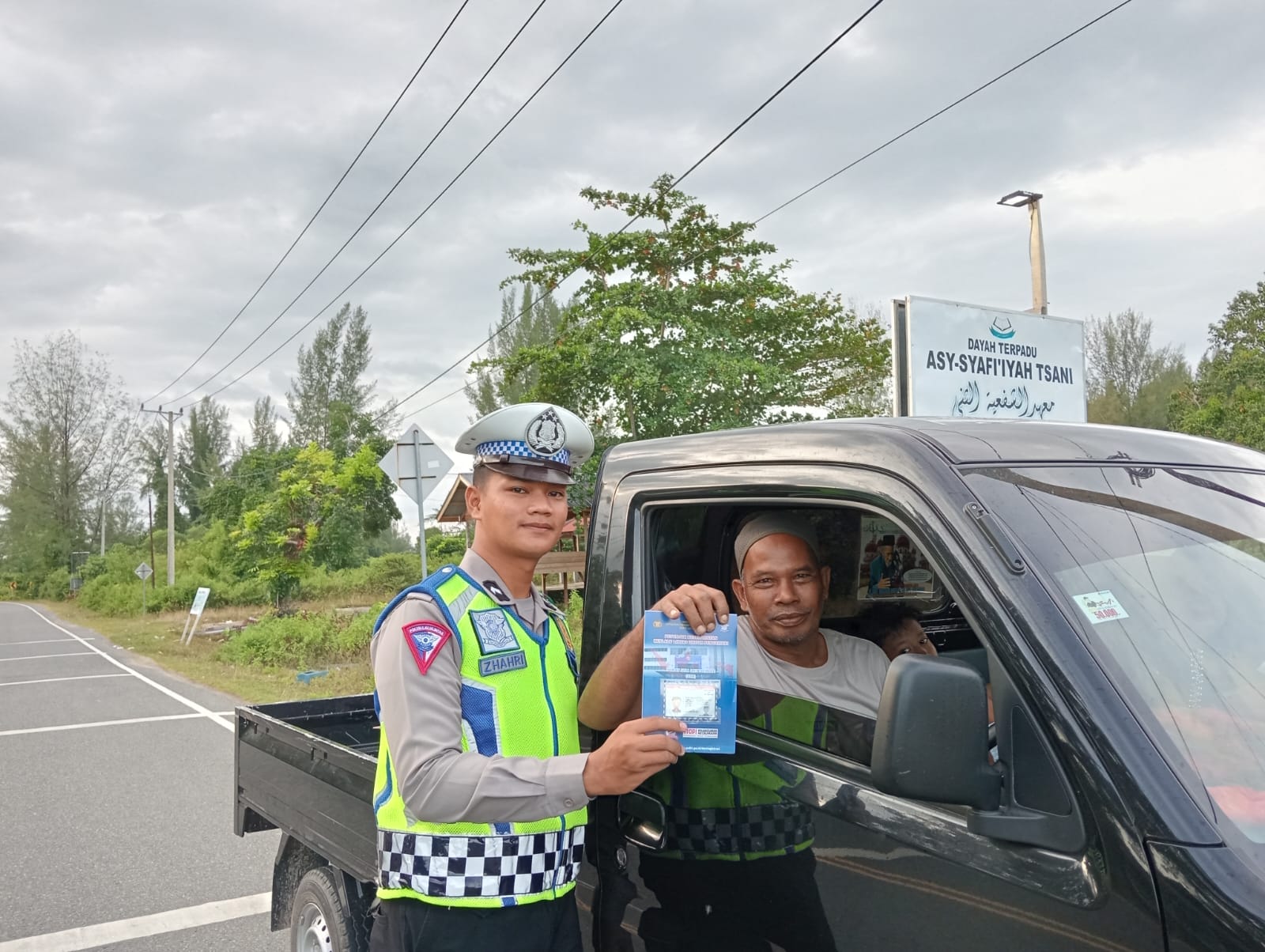 Polisi Bagikan Brosur Keselamatan Kepada Pengguna Jalan di Kawasan KTL Dalam Rangka Ops Patuh Seulawah 2024