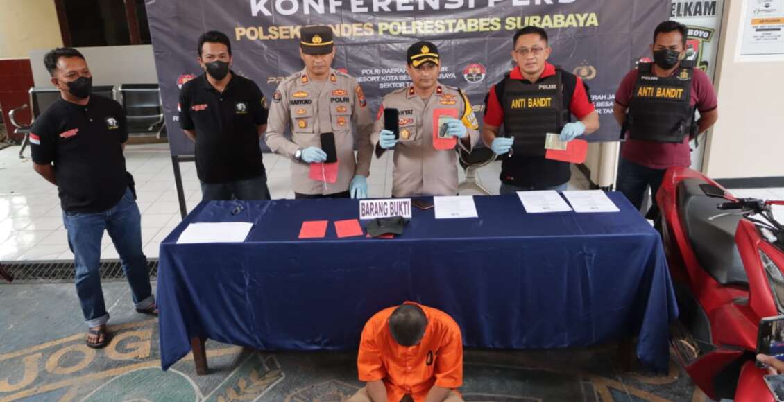 Kompol Zulkipli Ahyat Musa Kapolsek Tandes Surabaya menyebut, pelaku AT berhasil kita tangkap setelah adanya laporan dari dua korban, kemudian Tim berkoordinasi dengan Polsek Sukomanunggal Surabaya untuk melakukan penangkapan.