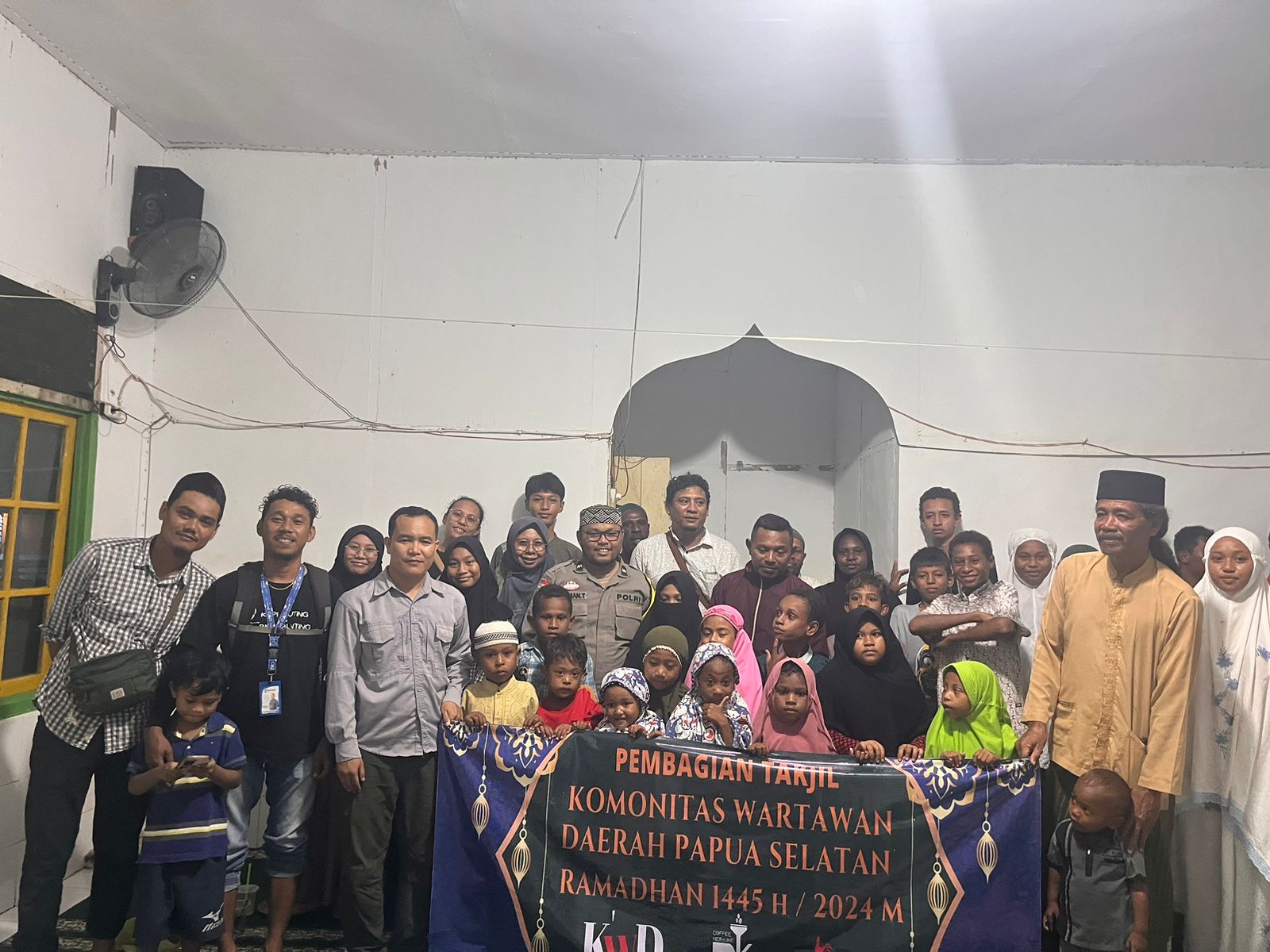 Polisi bersama Komunitas wartawan Papua selatan membagikan berkat di bulan suci Ramadhan