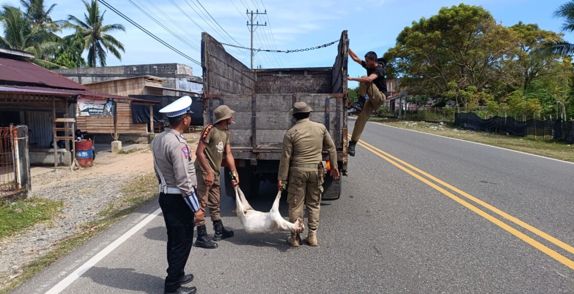 Polisi Bersama Stakeholder Lakukan Penertiban Hewan Ternak Antisipasi Laka Lantas Dalam Rangka Operasi Zebra Seulawah 2024