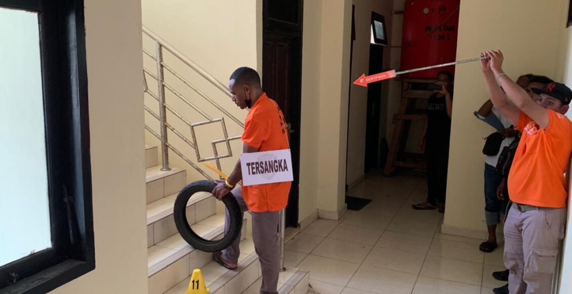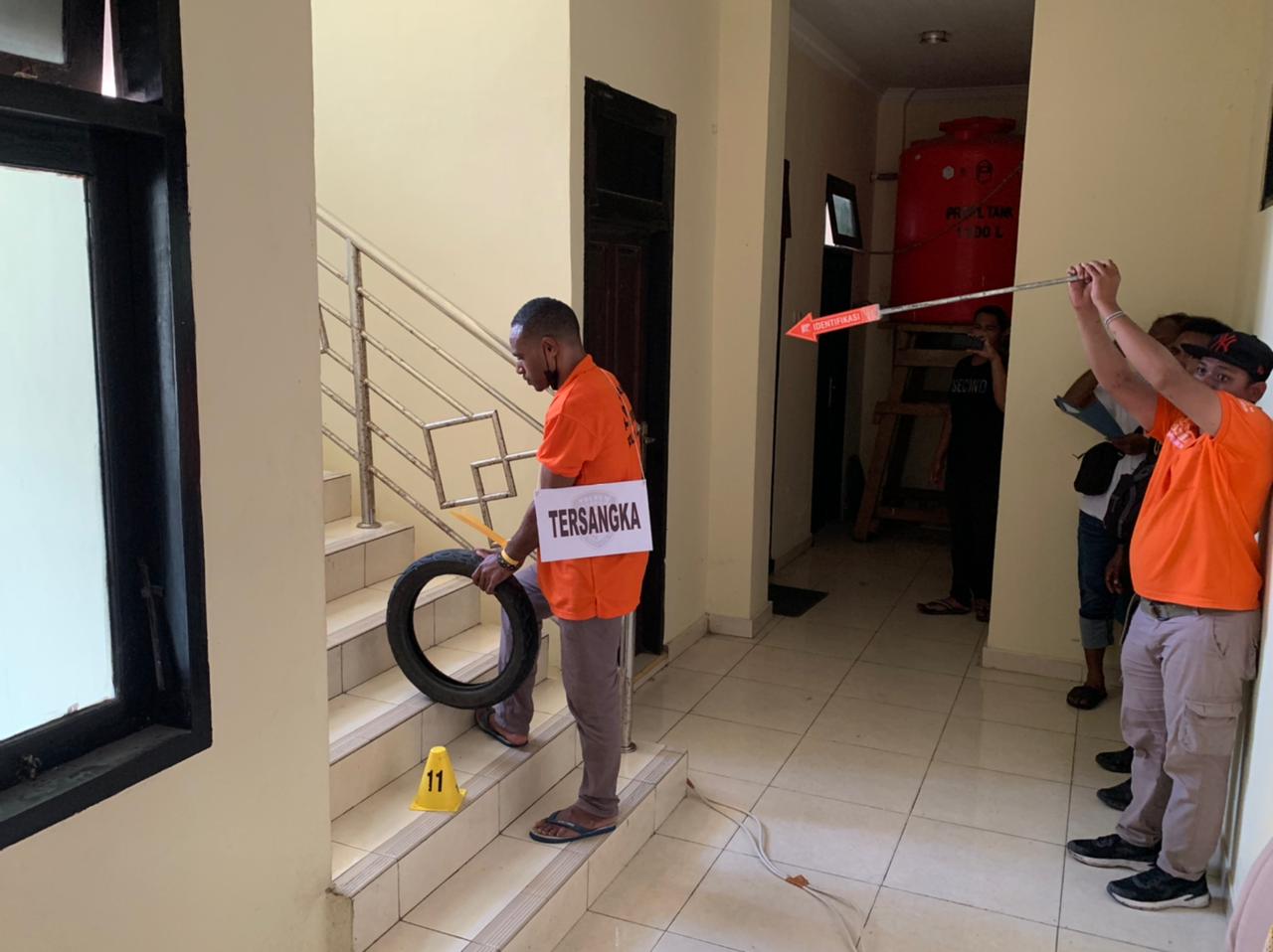 Rekonstruksi kejadian dipimpin langsung Kasat Reskrim Polres Jayapura AKP Sugarda A.B Trenggoro, S.TK., MH serta dihadiri Jaksa Penuntut Umum Kejaksaan Negeri Jayapura Yoseph, SH., MH, beberapa awak media yang bertugas di Kab. Jayapura dan diadegankan langsung oleh tersangka berinisial AL (22).