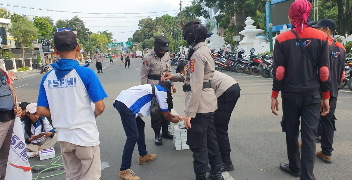 CIREBON KOTA,ikagawanews.id – Tanpa Komando, puluhan Polisi wanita (polwan) yang cantik-cantik. Secara humanis membagikan nasi Kotak ditengah teriknya matahari kepada para peserta unjuk rasa yang tergabung dalam Federasi serikat pekerja metal Indonesia (FSPMI).