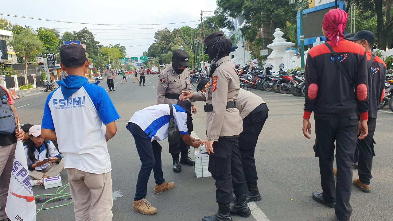 Polisi Wanita Polres Ciko dapatkan apresiasi peserta unras saat bagikan nasi kotak