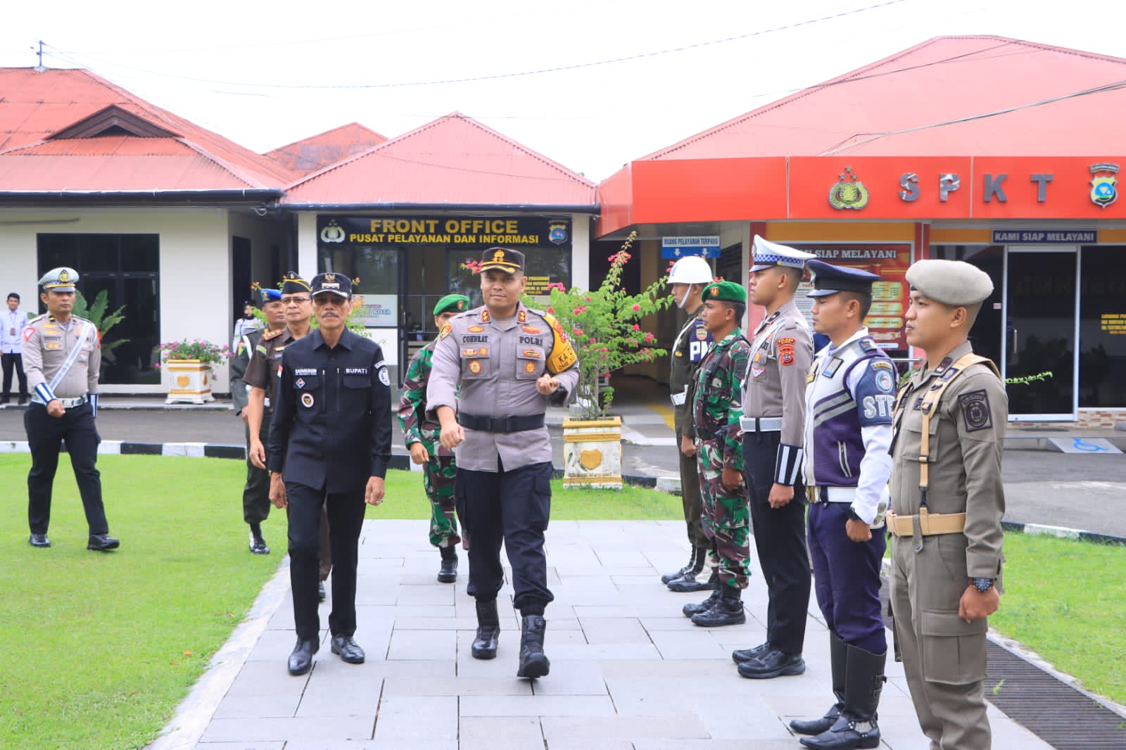 Kapolres 50 Kota AKBP Ricardo Condrat Yusuf,S.H.,S.I.K.,M.H. di dampingi oleh Bupati Kabupaten Lima Puluh Kota Safaruddin Dt Bandaro Rajo memimpin Apel Gelar Pasukan Operasi Ketupat.