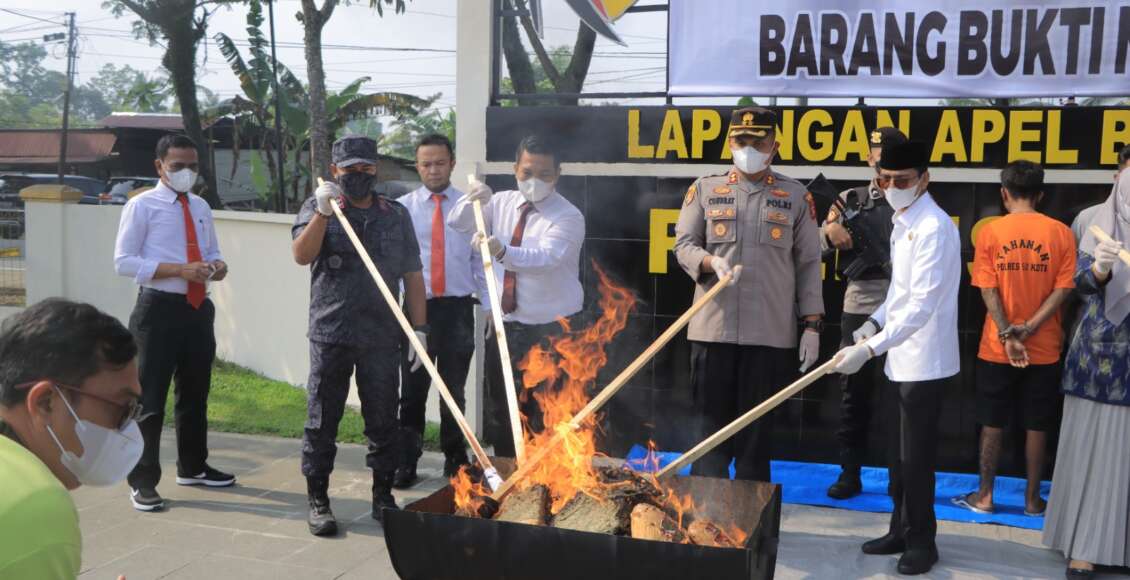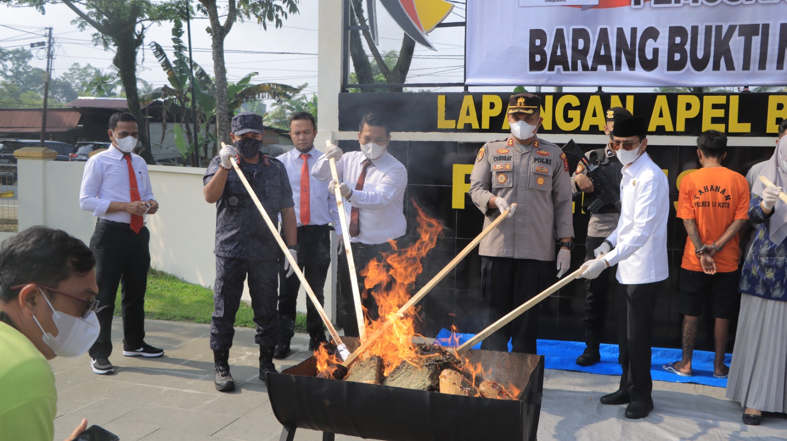 Polres 50 Kota Musnahkan Barang Bukti 54 Kg Ganja Kering